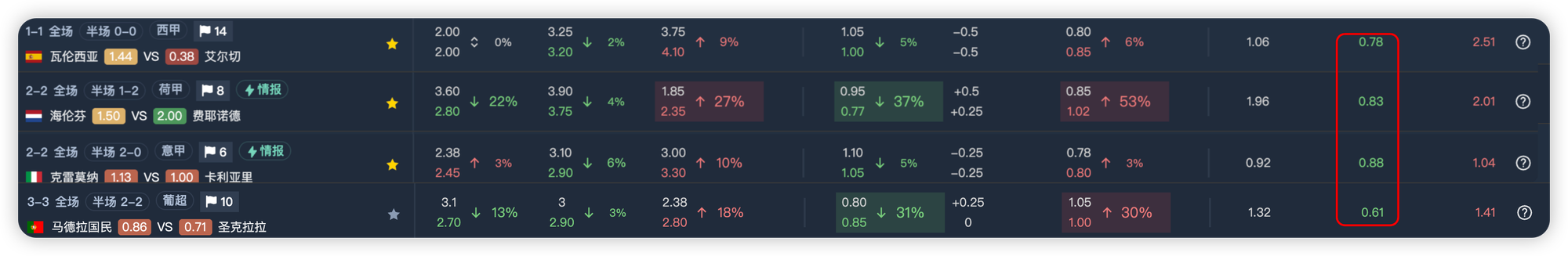 - 数值越小: 说明机构已掌握了赛事信息,对该赛果进行重点防范。